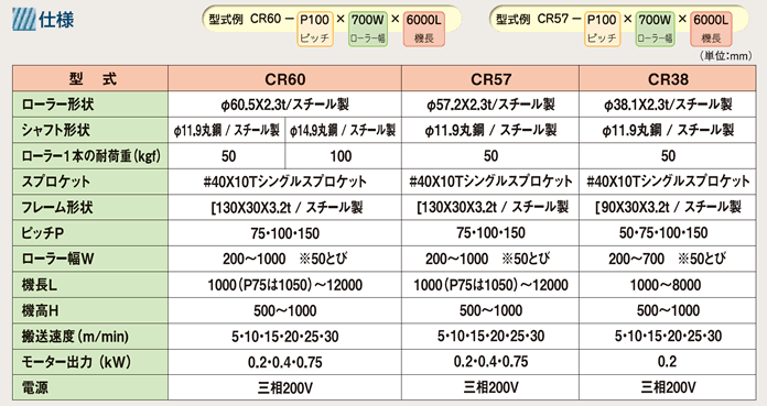 ベアリング入りシングルスプロケットの採用により、シンプル構造でCRT42型との連結や立脚台の取合いが可能です。